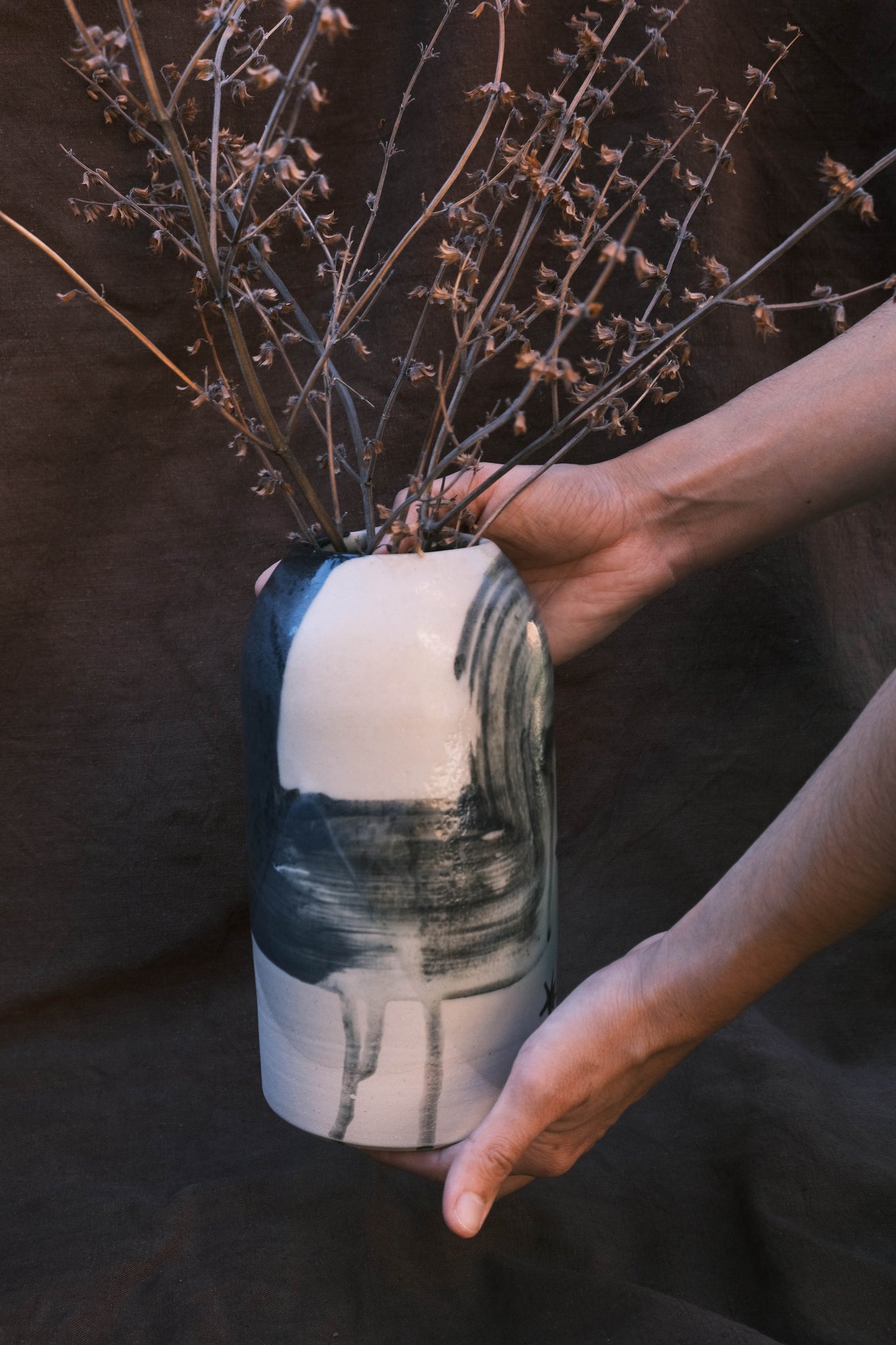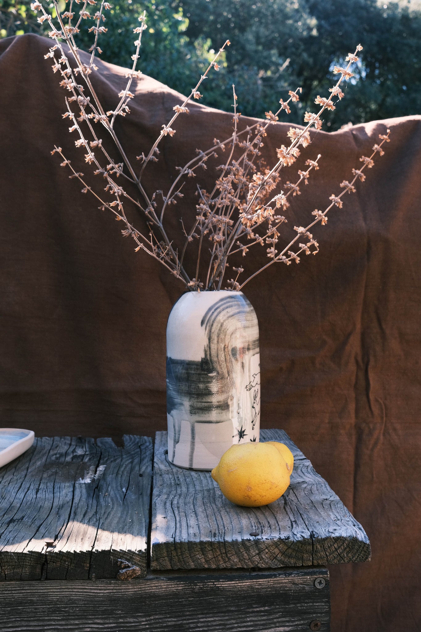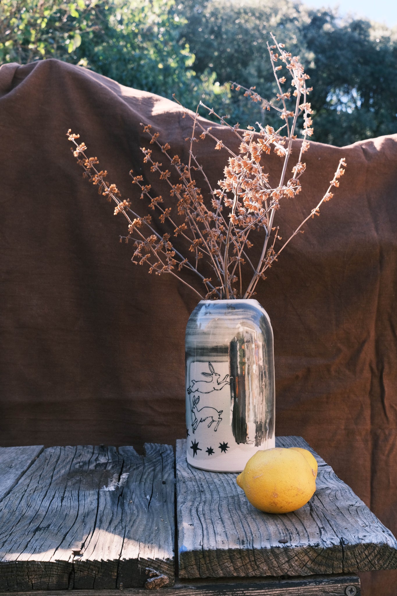 - Façonné et décoré de A à Z à la main en grès blanc décoré à l'engobe noire